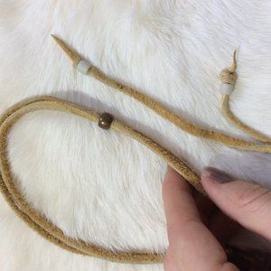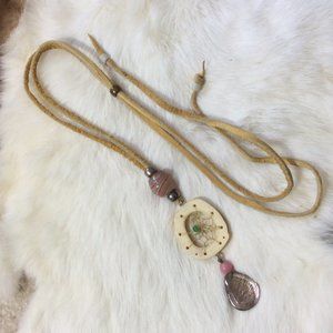 Long leather strap with movable bead that adjusts the length. can be worn as a choker or a long V. Tan. one bead in the center of the web. Spiderweb. Carved. Handmade. Stunning bohemian collectible piece. native vibes. Hippie chic. Sweet dreams! Great condition. Smoke free home.