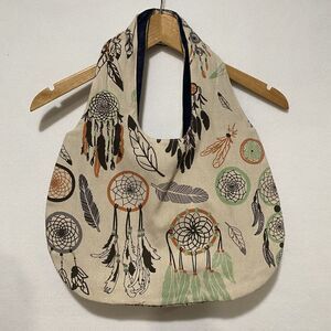 Dreamcatcher Feather Boho Canvas Purse Hobo Tote Bag Denim Lined