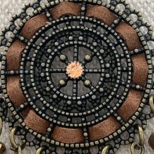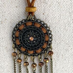 TAGS: boho pendant necklace, Native American style necklace, Western style jewelry, spiritual aesthetic, tribal style bronze medallion necklace, handcrafted talisman, earthy tones