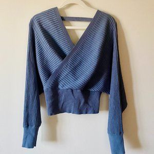 Dreamer By Debut Criss Cross V Neck Blue Sweater