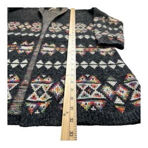 Dreamers Aztec Cardigan Sweater Women Med Gray Long Open Front Southwestern Boho