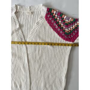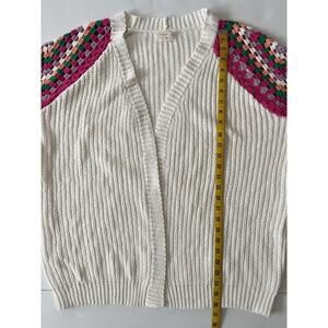 Dreamers By Debut Open Cardigan Sweater Women M/L White Colorful Crochet Sleeves