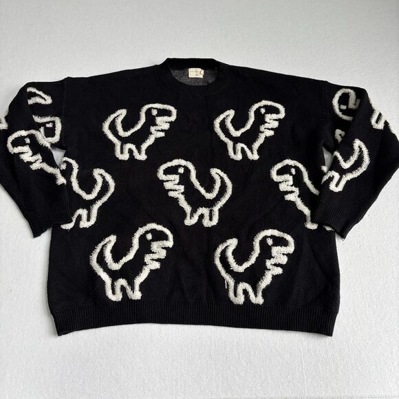 Dreamers By Debut T Rex Dinosaur Sweater Womens L Black Novelty Teacher Oversize