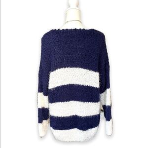 Dreamers Eyelash Chenille White And Navy Stripe Fuzzy Sweater (NWOT)