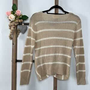 Dreamers Long Sleeve Brown Cream V Neck Sweater Size Small