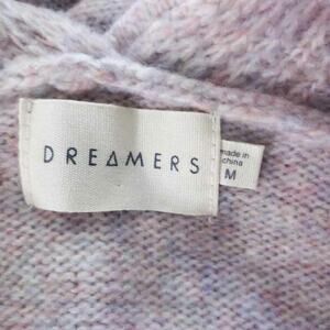 Dreamers Open Cardigan Pink Wool Blend Medium. Pnk with flecks of lavendar. Pockets on front. 95% acrylic, 5% wool. Light pink comfy cardigan. Cableknit trim detail along opening.