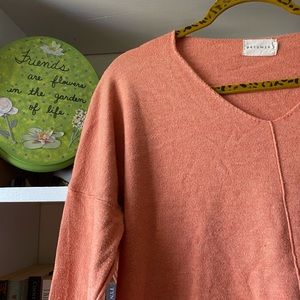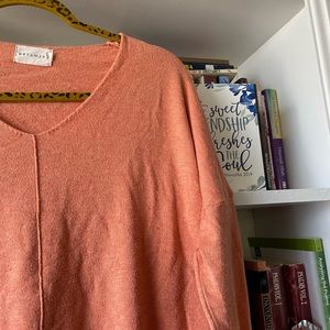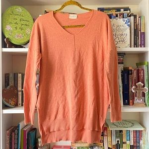 Dreamers | Orange Slouchy High Low Ribbed Detail V-neck Sweater