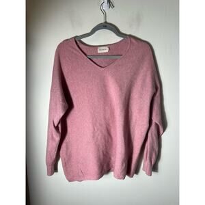 Dreamers Pink Ribbed V Neck Knit Sweater Sz M/L