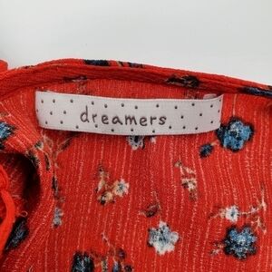 Dreamers Red Floral Tie Front Kimono Style Lightweight Cardigan, Size S.