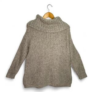 Dreamers Women's Open Knit Cowl Neck Sweater Size S Taupe Gray Pointelle Knit