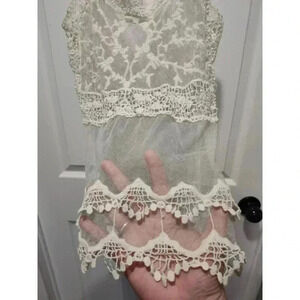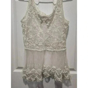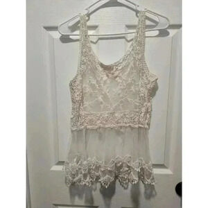 Dreamers Womens Size Medium Lace Ivory Sheer Sleeveless Scoop Neck Tank Top