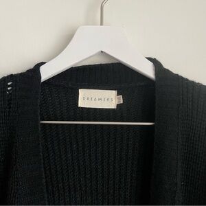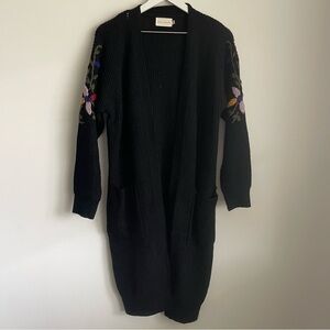 Dreamers black knit embroidered sleeve long open front cardigan S/M
