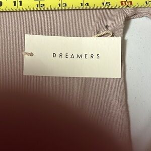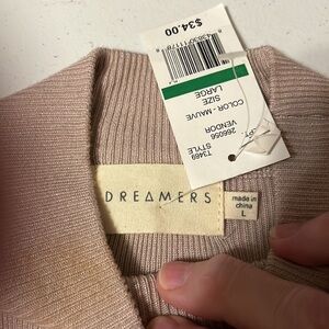 Dreamers tan Mock turtleneck sweater with short sleeves. Stretchy with viscose and nylon. Size large. New with tags