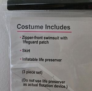 This slim red swimsuit costume includes 'Lifeguard' printed skirt for when you're off duty, as well as an inflatable flotation device to help you with your search and rescue.