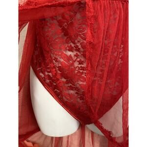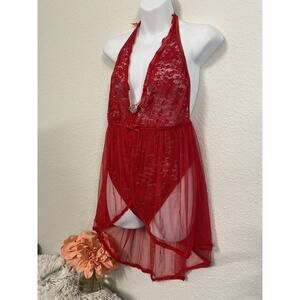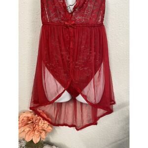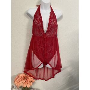 Dreamgirl Plus Sz Sheered Hot Red Trimmed Laced Meshed Garter Babydoll OS QUEEN