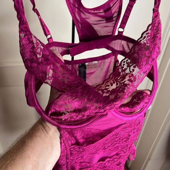 Dreamgirl Stretch mesh garter slip lace trim underwire open cup Valentines