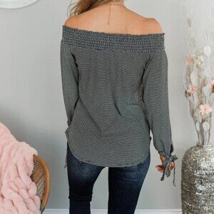 Dreaming of Stripes Off the Shoulder Top- Black & White