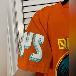 Great condition. The embroidered yellow “DRM LND” on the front side has a few picks in it.