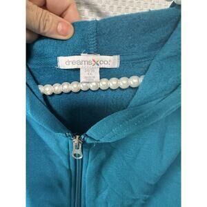 The Dreams & Co Plus Size Long Hooded Fleece Sweatshirt Robe in 4x size is a cozy and stylish addition to any winter wardrobe. Made from a comfortable blend of 40% polyester and 60% cotton fleece, this relaxed fit sweater features a hood for extra warmth and a robe style for added comfort. The blue color adds a pop of color to the casual occasion, making it perfect for lounging at home or running errands during the colder months. With its brand name and high-quality material, this sweater is sure to become a favorite in any woman's closet.