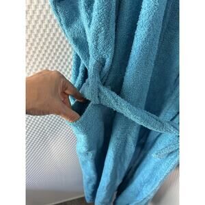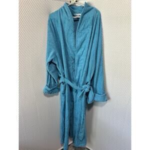 Dreams & Co Plus Size Long Terry Cloth Cotton Robe Winter Turquoise Blue 2x