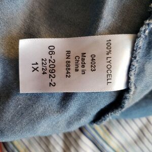 Off the shoulder with thick elastic neck line, ruffled sleeves and hem. Tag says 1× and 22/24. Measurements pending for best fit