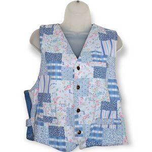 Patchwork pastel floral and striped patterns on front of vest only.