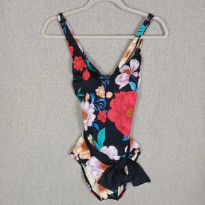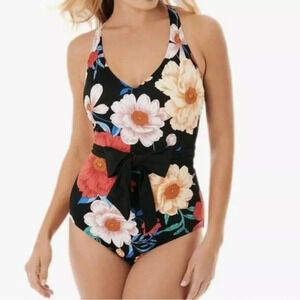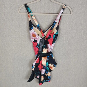 Dreamsuit Swimsuit Size 8 Black Floral Mircle Brands One Piece Slimming Control