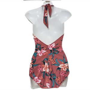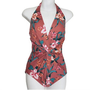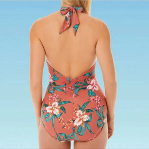Whether you're soaking in the rays or just chilling in the shade, this women's floral slimming Control one-piece has your back. The twist front halter neckline gives this women's floral swimsuit a lovely look for pool or beach.