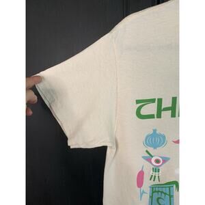 This women's T-shirt features a crew neck and short sleeves, made of 100% cotton knit fabric in beige. It showcases a graphic print of Shrek, offering a casual style with a Shrek theme. The T-shirt is designed for regular fit and easy care, suitable for all seasons. Ideal for travel, parties, or casual wear, this shirt is a fun and unique addition to any wardrobe. The is some slight pilling around the shirt. More so under the arms. See pictures.