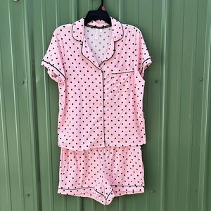 Dreamy Soft Short Sleeve Knit Notch Collar Top & Shorts Pajama 2-Pc Set Size M