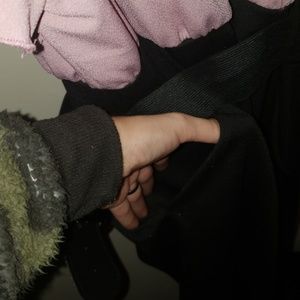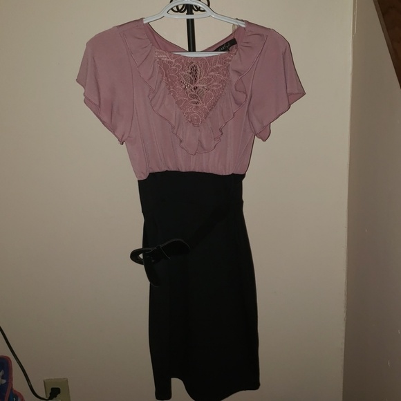 Pink and black with pockets and a belt