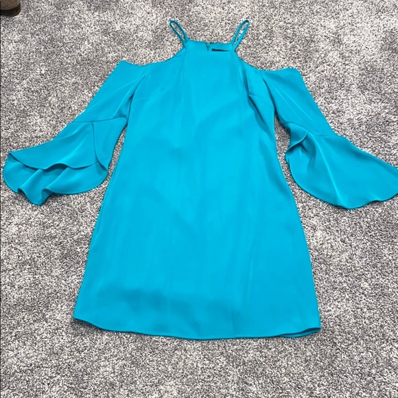 The color in the picture makes the dress look more blue. It is actually a sea green.