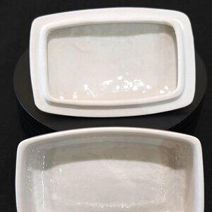 Stunning white glazed porcelain lidded trinket box with two 3D roses on top and hand painted gold accents.