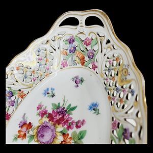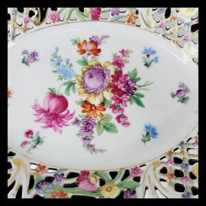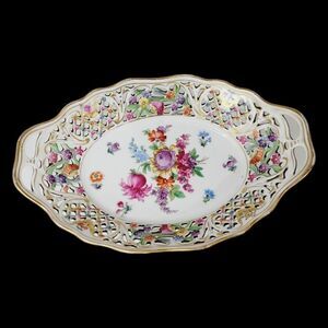 Vtg Porcelain Schumann Bavaria Dresden Candy Fruit Footed Pedestal Oval Bowl Dish