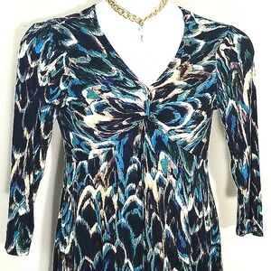 Dress 3/4 long sleeve abstract print stretch MIDI