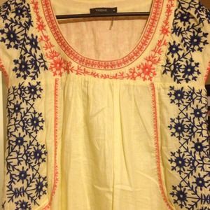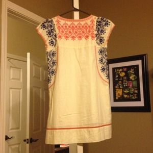 Off-white, pink, and blue dress. Worn once. Size medium, but has a generous fit.