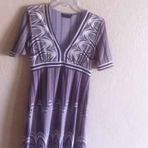 Dress with great datalink and pattern . Dress is shades of purple and grey. Very flattering