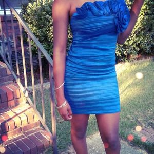 Royal blue dress with beautiful roses along top. NEW WITH TAG STILL ON THEM. Form fitting to show off all of your wonderful curves. Perfect for a school dance or any type of formal. Size: Medium 💙💎 [50% polyester, 30% rayon, 17% nylon, & 3% spandex]