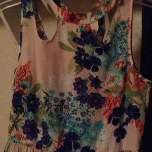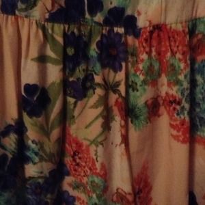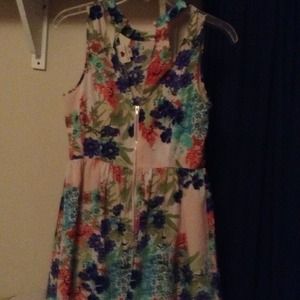Adorable floral print with detailed neck piece. Button on back to form around neck. Zip up closure. Size medium but runs a bit small.