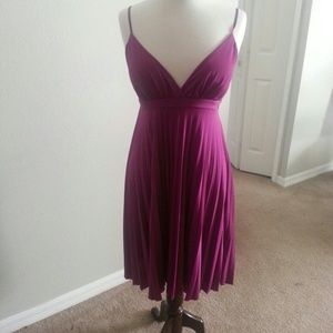Beautiful pleated purple dress. Tie in back. Comes right below the knee