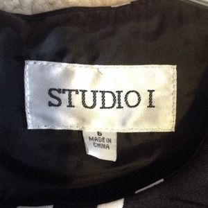 Beautiful black and white dress, size 6 with pockets. I am 5'2" and it hits me mid knee. It has cap sleeves and a short V at neck line. It has been worn twice. It would look great with a bright belt and matching shoes. I wore purple heels with it and it brought a lot of compliments!:)