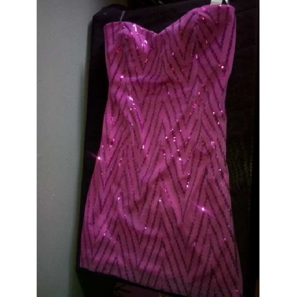 Pink w/ Hot pink lining. Fitted dress and stretches. Nice fit. Brand new. Great condition. This dress can fit a Medium