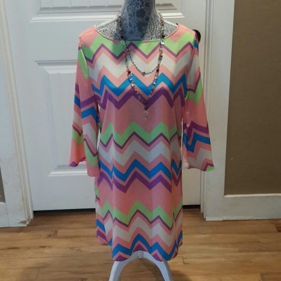 Beautiful multi colored chevron dress. Great for Spring. Lightweight. Not lined.