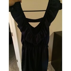 Navy blue dress with belt hoops and a V open back and front with ruffles! Cute with sandals or wedges ♥️♥️♥️♥️