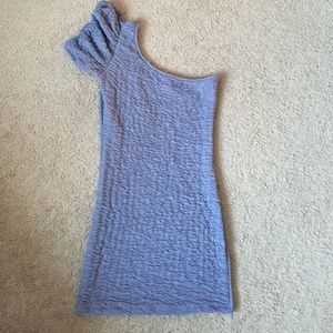 One Shoulder Ruffle Dress. 95% Polyester/5% Spandex. Full length: 31 inches. Size Med but runs Small. Never worn!