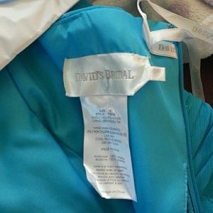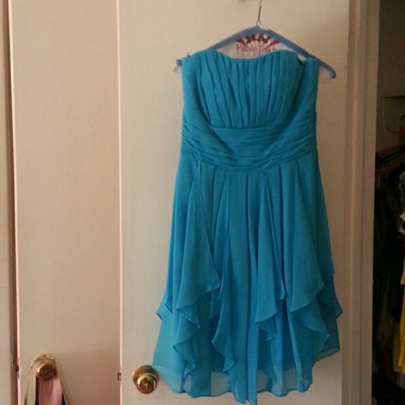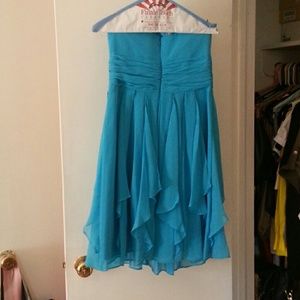 Turquiose flowy dress worn once as a bridesmaid for a friends wedding. No alterations were made. Shell is 100% polyester and lining 100% polyester. Dry cleaned and ready to wear.