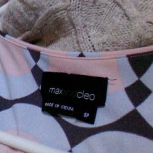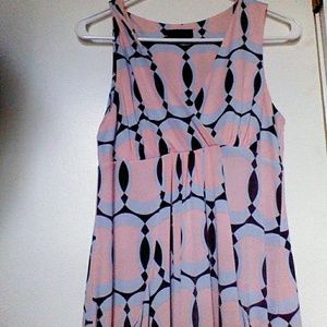 Pink, blue and white dress. Also has 2 pockets. Big bold cute print. Very comfortable fabric,90% polyester. In great condition. Says small but fita more like a medium.