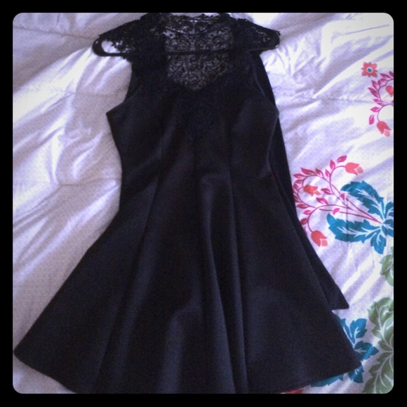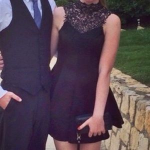A classic beautiful black dress with lace on the top, an open back, and ribbons to tie the top. LEAVING IN A WEEK TRYING TO GET RID OF EVERYTHING