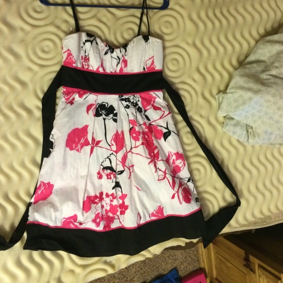 Flowered dress. Straps. Ties in the back. Great condition. Wore only once. Offers appreciated. Will consider any.