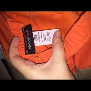 Bright orange and tan dress. Stretchy material, very form fitting when on. New with tags, never worn - just tried on.